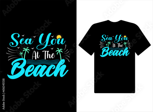 Sea you at the beach summer t-shirt design. Adventure, illustrations, sunset graphics, vintage summer, Custom t-shirt design template.
