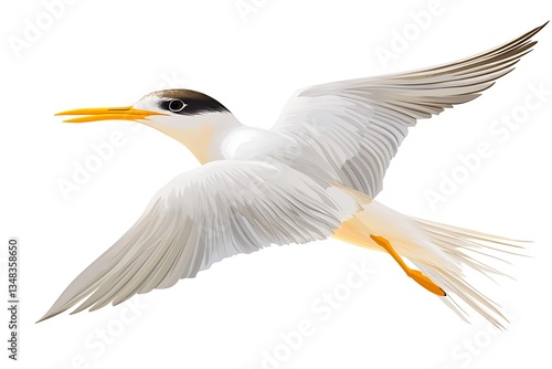 Seabird in flight against white background. Possible use Nature photography