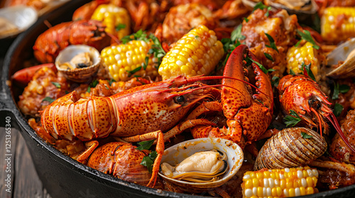 Seafood feast lobster and clams coastal kitchen culinary delights rustic setting close-up view
