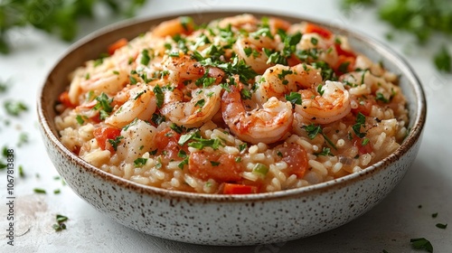 Seafood Risotto with Shrimp and Herbs. Generative AI