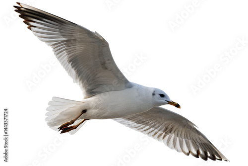 Seagull bird in flight with wings spread wide isolated on the transparent background