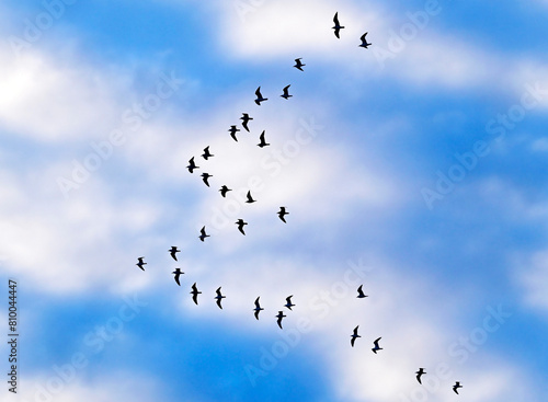 Seagull flock at sky