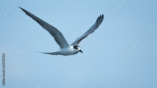 Seagull in blue sky.