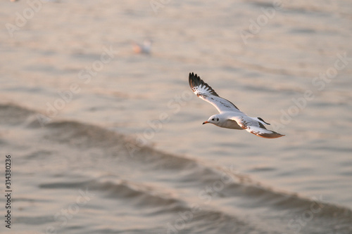 seagull in flight sunset