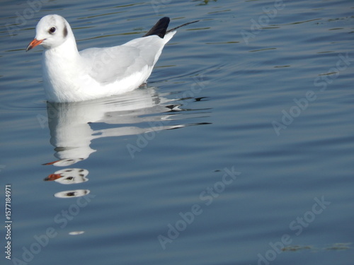 Seagull resting on calm blue water in nature setting