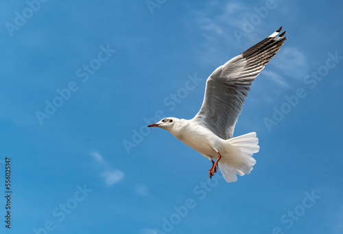 Seagulls flying in the beautiful blue sky