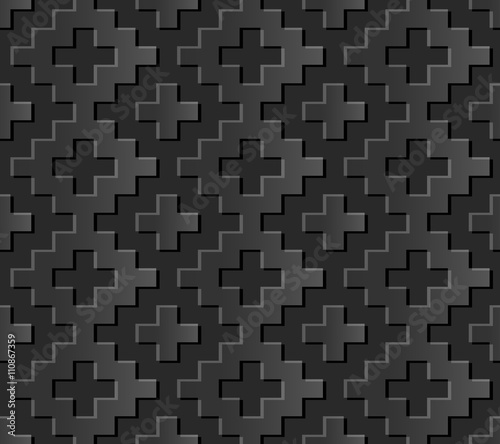 Seamless 3D dark paper cut art background 445 square mosaic geometry check cross