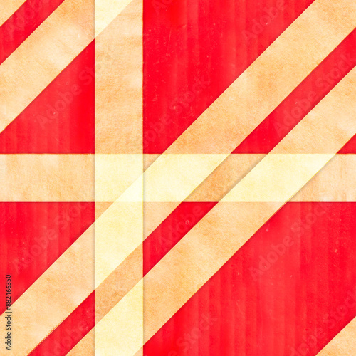 Seamless 4k photo texture of red colored cardboard paper with duct tape mesh.