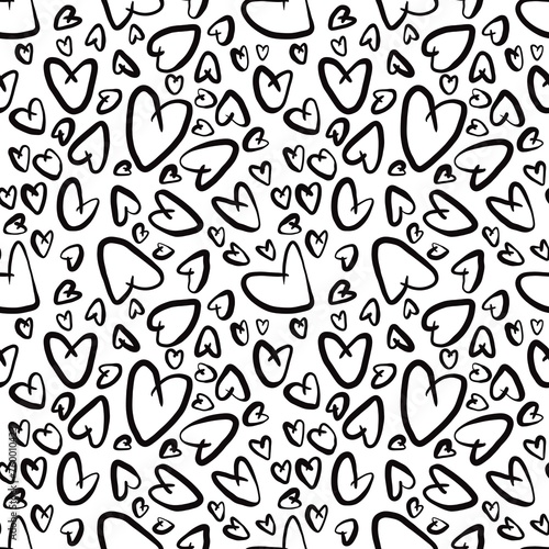 Seamless abstract celebrating pattern with hearts. Simple background in black and white colors. Digital texture. Design for textile fabrics, wrapping paper, background, wallpaper, cover.