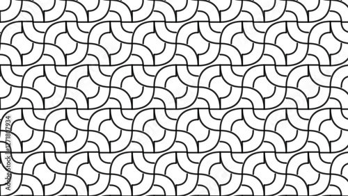 Seamless Abstract Geometric Black and White Pattern with Curved Lines