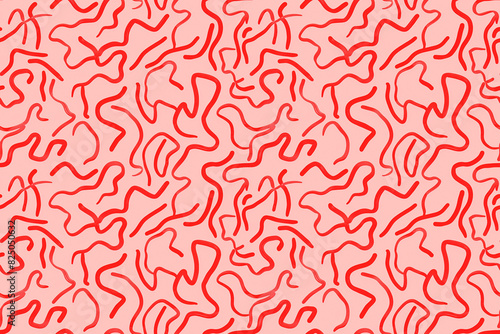 Seamless abstract pattern with red wavy lines on a pink background, ideal for textiles and wallpaper