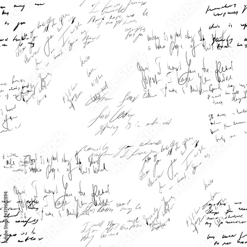 Seamless abstract text pattern. Handwritten font on a white background. Ink on paper