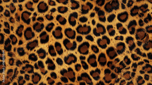 Seamless and lifelike leopard fur pattern with intricate spots and a natural color palette, highlighting the luxurious texture of this wild animal’s coat. Great for high-end fashion or interior wallpa