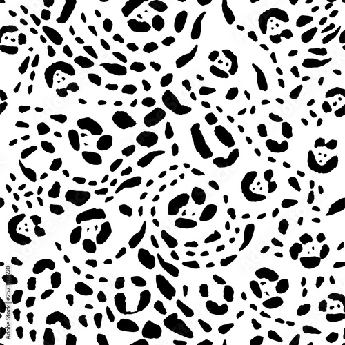 Seamless animal print, black spots on a white background. Stock vector illustration.