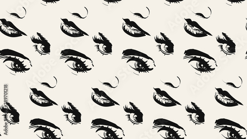 Seamless background - lips and eyes of a young girl. Fashion sketch character girl drawing on white background