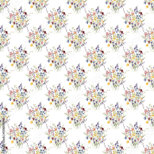 Seamless background, floral pattern with watercolor flowers. Repeat fabric wallpaper print texture. Perfectly for wrapped paper, backdrop.
