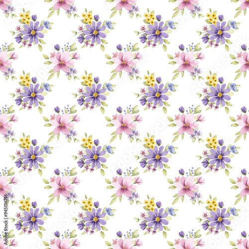 Seamless background, floral pattern with watercolor flowers. Repeat fabric wallpaper print texture. Perfectly for wrapped paper, backdrop.