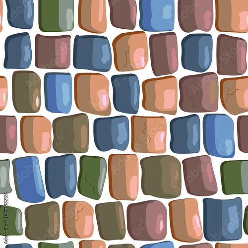 seamless background of stones, paving stones. Vector pattern stone wall or road for decoration of games and objects. building texture.
