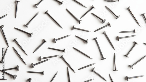 Seamless background pattern of bent nails penetrating a white substrate scattered randomly in a square format