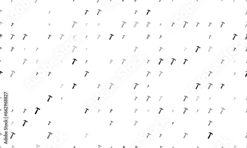 Seamless background pattern of evenly spaced black hammer symbols of different sizes and opacity. Illustration on transparent background