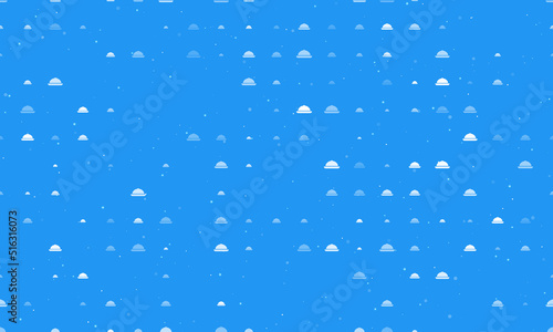 Seamless background pattern of evenly spaced white cloche symbols of different sizes and opacity. Vector illustration on blue background with stars