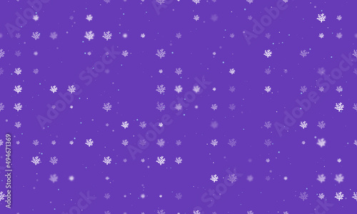 Seamless background pattern of evenly spaced white coral symbols of different sizes and opacity. Vector illustration on deep purple background with stars