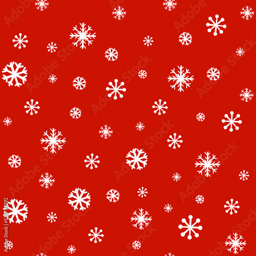 Seamless background with snowflakes on red. Festive Christmas or New Year wrapping paper.