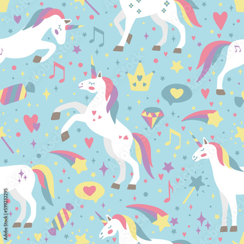 Seamless background with unicorns. Perfect for kids design, fabric, packaging, wallpaper, textile, apparel