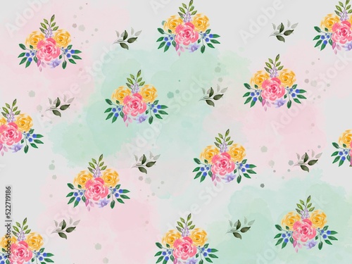 Seamless Background with Watercolor Bouquet Flower