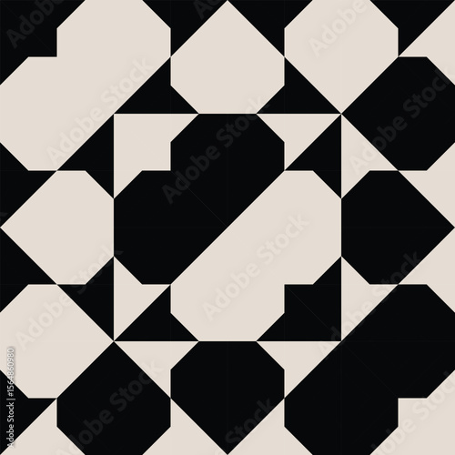 Seamless black and white mid century modern geometric pattern for backgrounds, fabric design, home decor.