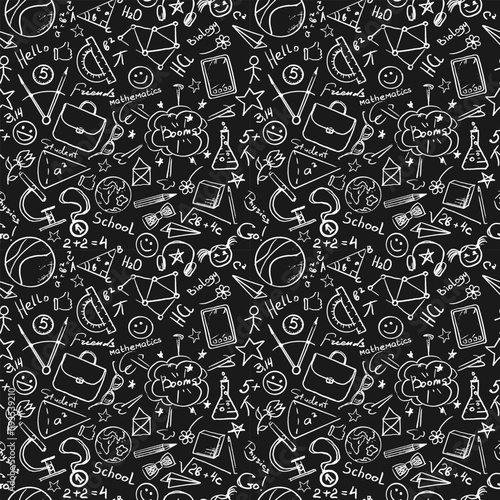 seamless black and white pattern on a school theme with design elements