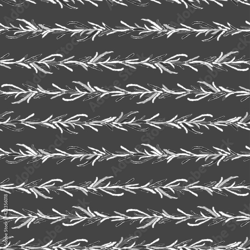 Seamless black and white pattern with foliage and plants