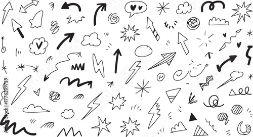 Seamless black and white vector background with hand-drawn font numbers, alphabet letters, and arrows for school or art design