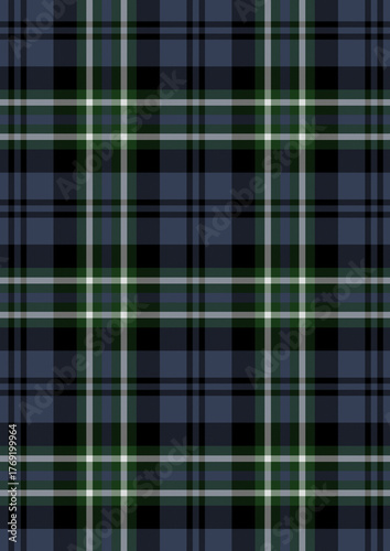 Seamless blue and green tartan plaid fabric texture backdrop with geometric tile pattern