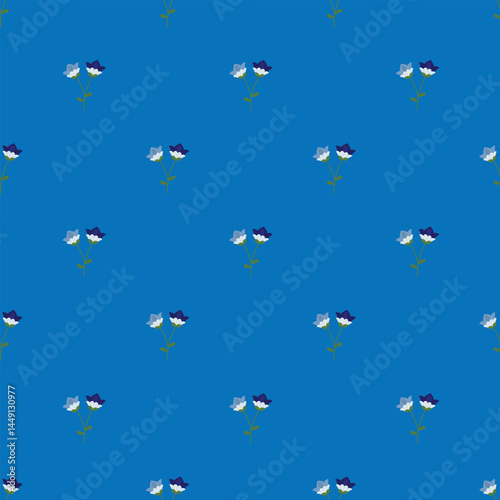 Seamless Blue Floral Pattern With Minimalist Stylized Flowers