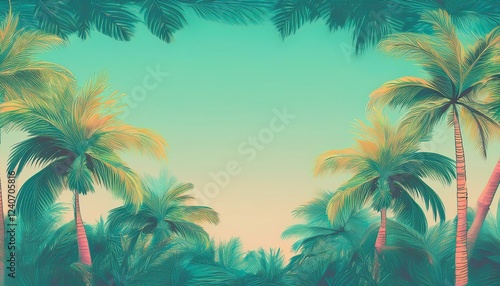 seamless border frame beautiful vibrant green palm trees on pastel background; copy space for your text