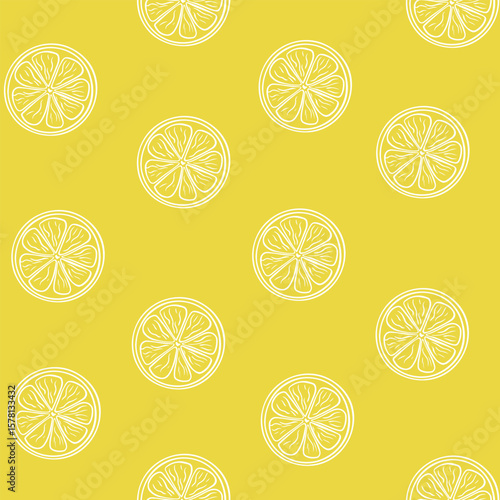 Seamless botanical vector pattern with hand drawn white lemons on yellow background for packaging, menus, wine-themed invitations, restaurant branding