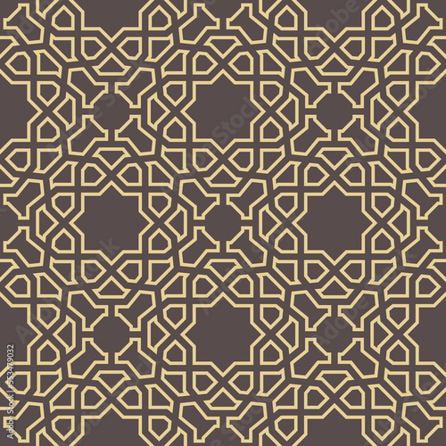Seamless brown and yellow vector ornament in arabian style. Geometric abstract background. Grill with pattern for wallpapers and backgrounds