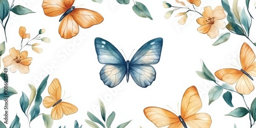 Seamless butterfly pattern design with watercolor style, nature-inspired