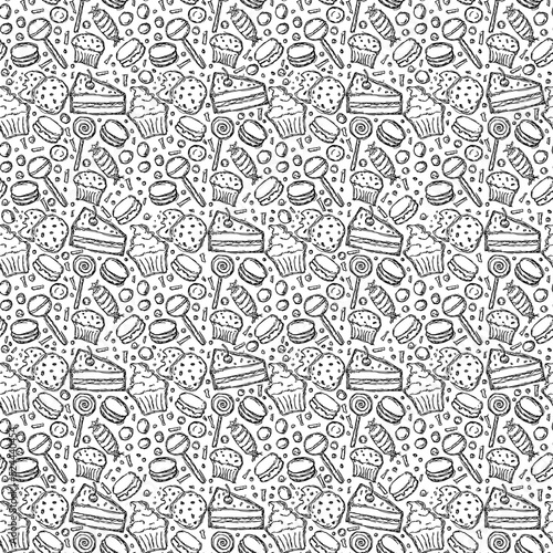 Seamless candy pattern. Sweets and candy background. Doodle vector illustration with sweets and candy icons