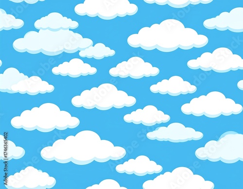 Seamless Cartoon Cloud Pattern on a Bright Blue Sky Background for Design