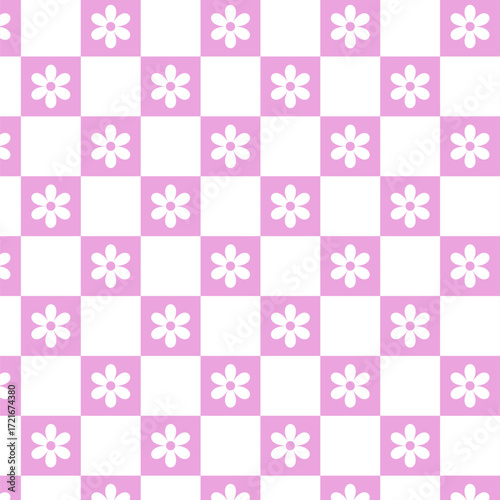 seamless checkered pattern with pink flowers