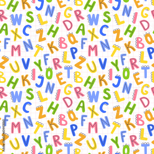 Seamless children's pattern with colorful funny letters. vector illustration background.