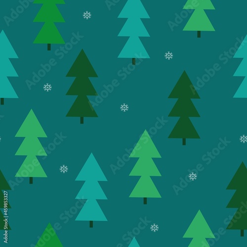 Seamless Christmas pattern. cute Christmas trees and snowflakes on a green background. vector texture. trend print for textiles, wallpaper and packaging.