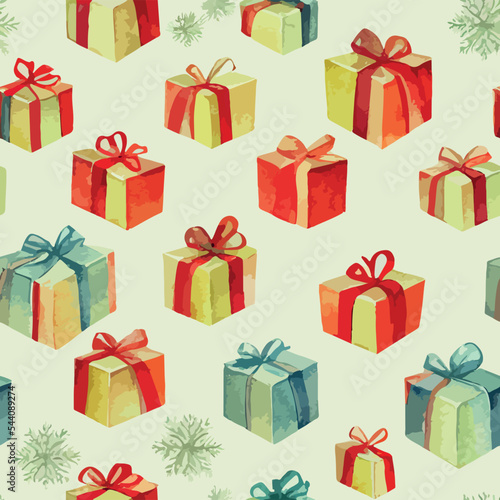 Seamless christmas present decoration, watercolor gift background pattern. New-year holidays