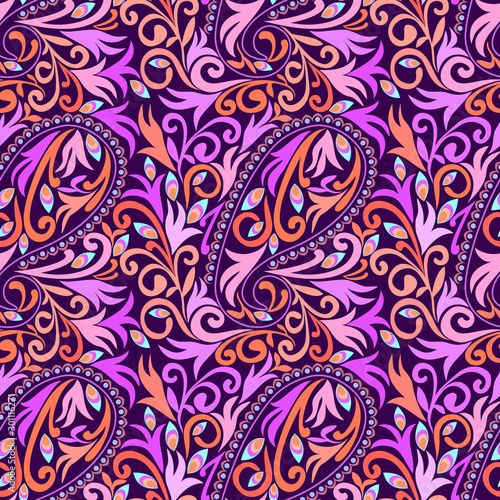 Seamless colorful classical pattern with paisley. Traditional bright ethnic ornament. Vector print. Use for wallpaper, pattern fills,textile design.