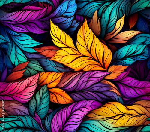 Seamless colorful leaf pattern, beautiful and modern for background design.