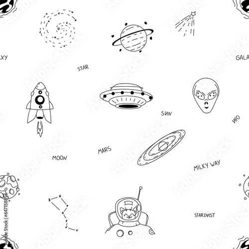 Seamless doodle pattern. doodle space. white background, black line. hand drawn.