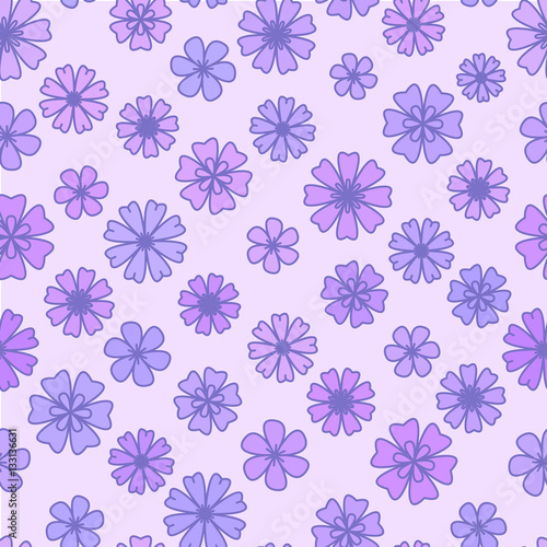 Seamless flat violet Flower Background, vector floral wallpaper