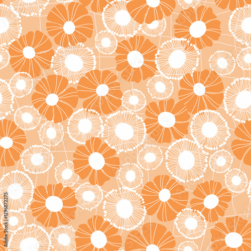 Seamless floral pattern based on traditional folk art ornaments. Colorful flowers on color background. Scandinavian style. Sweden nordic style. Vector illustration. Simple minimalistic pattern.